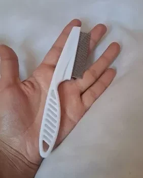 A small, effective, thin, and practical comb that captures fleas and flea droppings as well as scabs.
