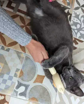 This comb has revolutionized our pet care routine! The curved bristles are perfect for getting under my cat's thick coat, removing loose hair without causing any discomfort. It's clear that it's been designed with both pet and owner in mind, from the non-slip handle that ensures a firm grip to the innovative self-cleaning mechanism that makes maintenance a snap. I've noticed a significant reduction in shedding around the house, and my cat seems happier and more relaxed after each grooming session.
