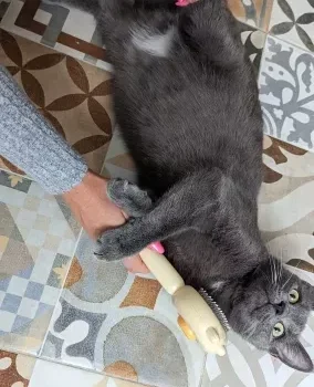 This brush has been a hit with my cats, easy to use and self-cleaning.